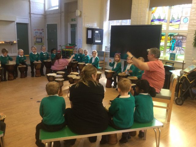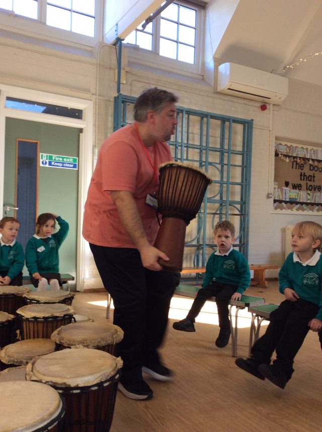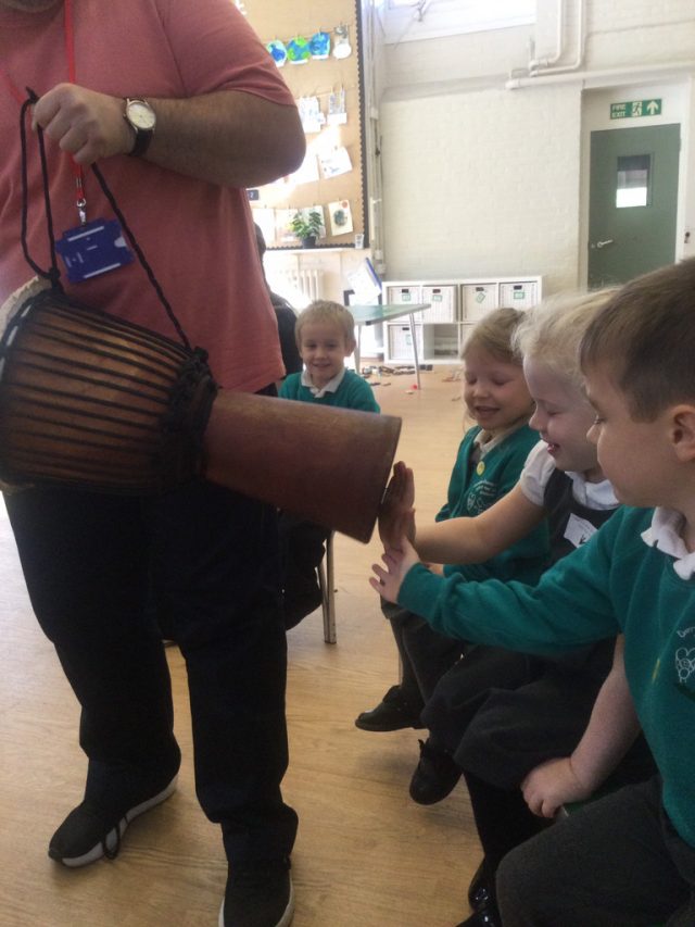 The children in Reception had a fantastic time learning how to play the Djembe drum. The children followed the drumming teachers instructions carefully, playing the drum loudly and quietly.