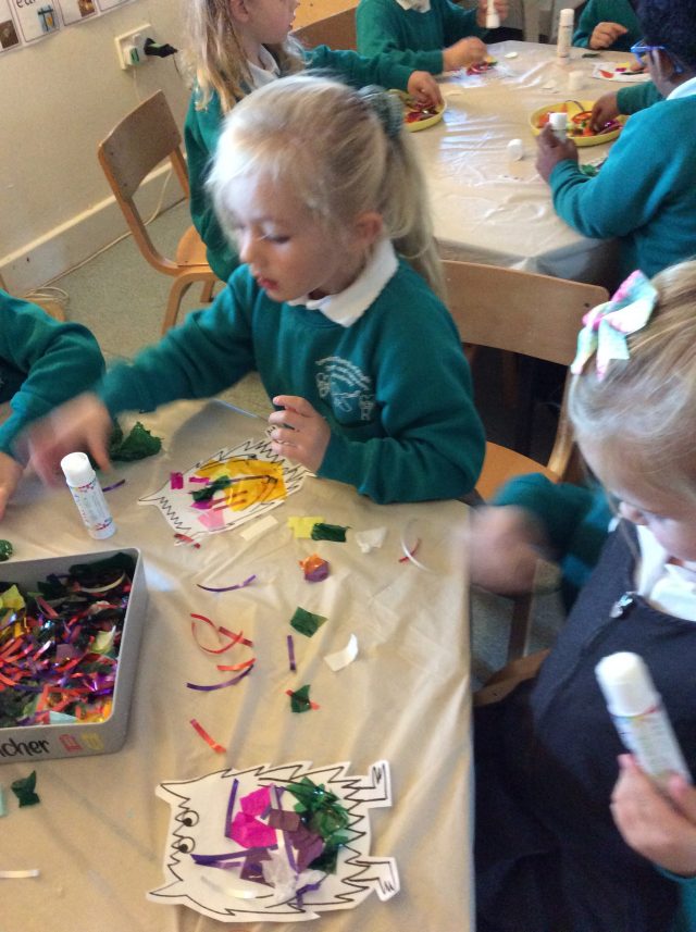 Pearl class looked fabulous in their yellow accessories today to celebrate Hello Yellow. The children enjoyed sharing the story Colour Monster by Anna Lienas and discussing their feelings before creating their very own Colour Monster.