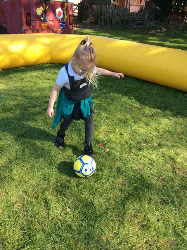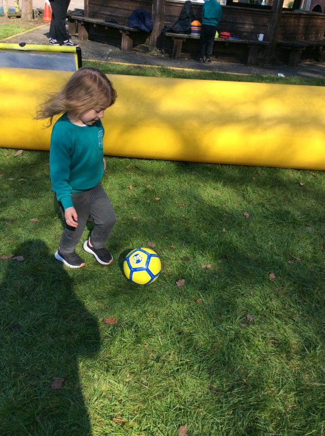 We were very lucky to have Football Fun Factory visit us. The children had the opportunity to learn how to dribble a football and learn new football skills before playing a class game. The children worked fantastically as a team, cheering one another on and celebrating together when someone scored a goal.