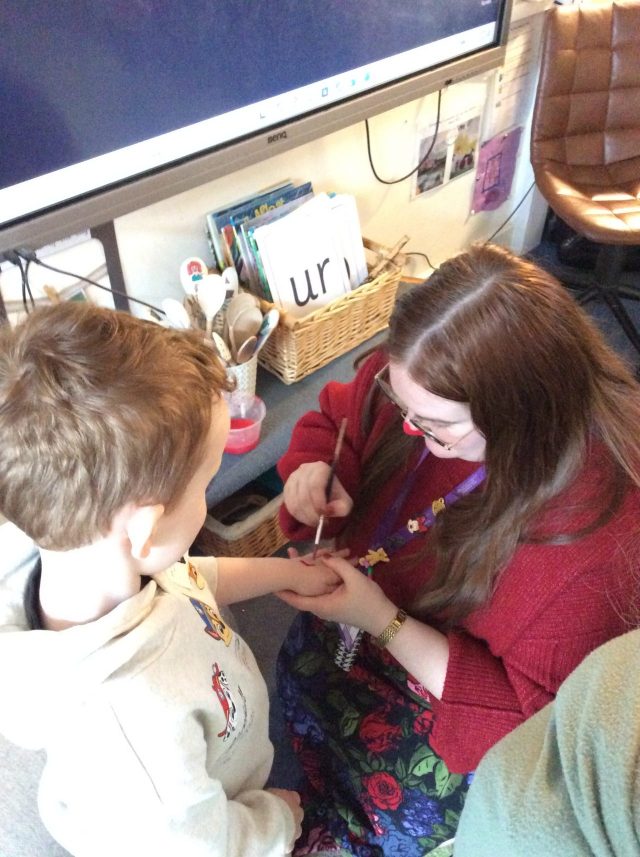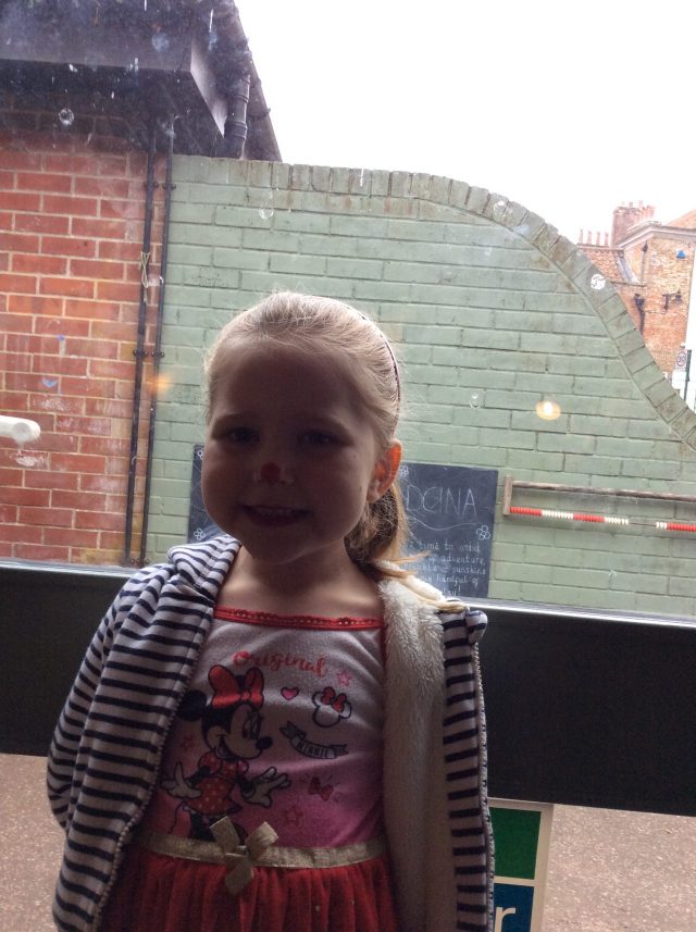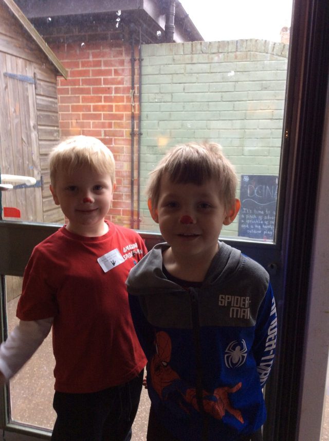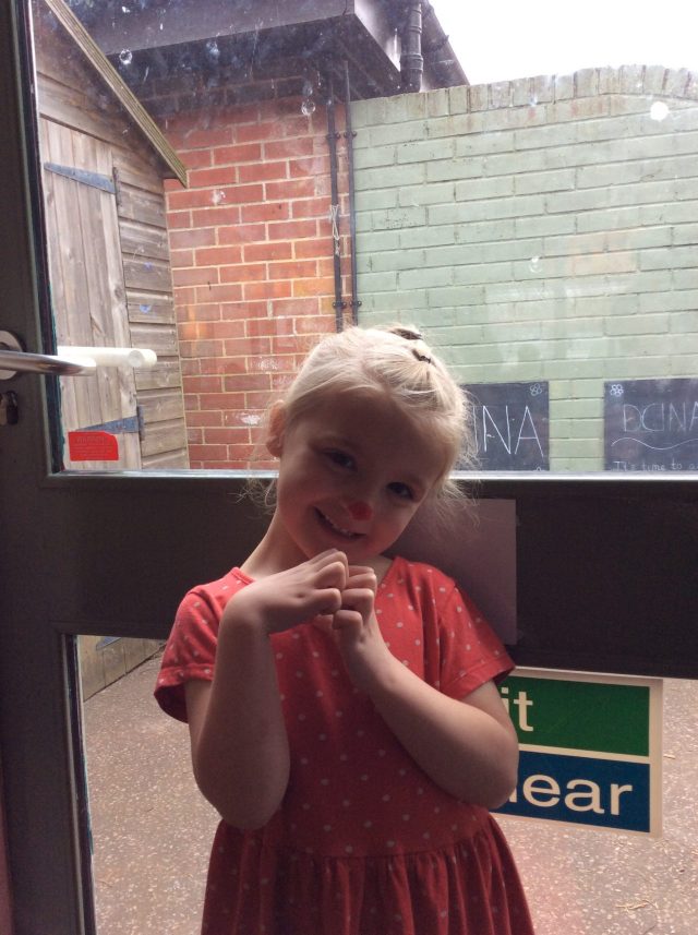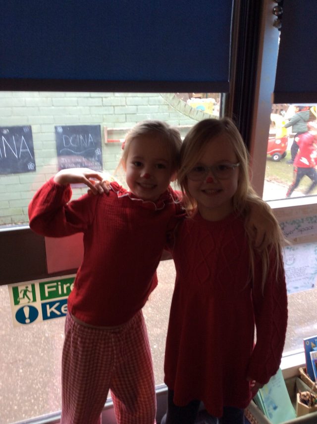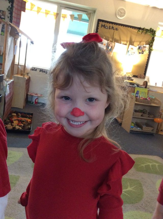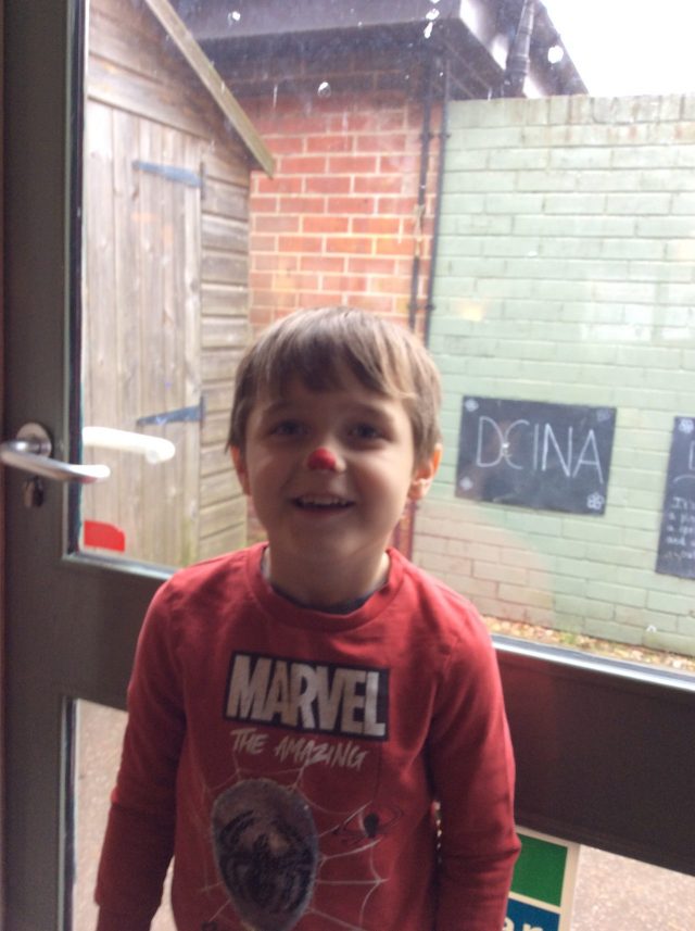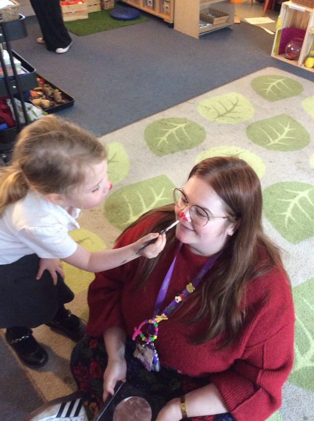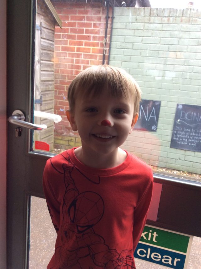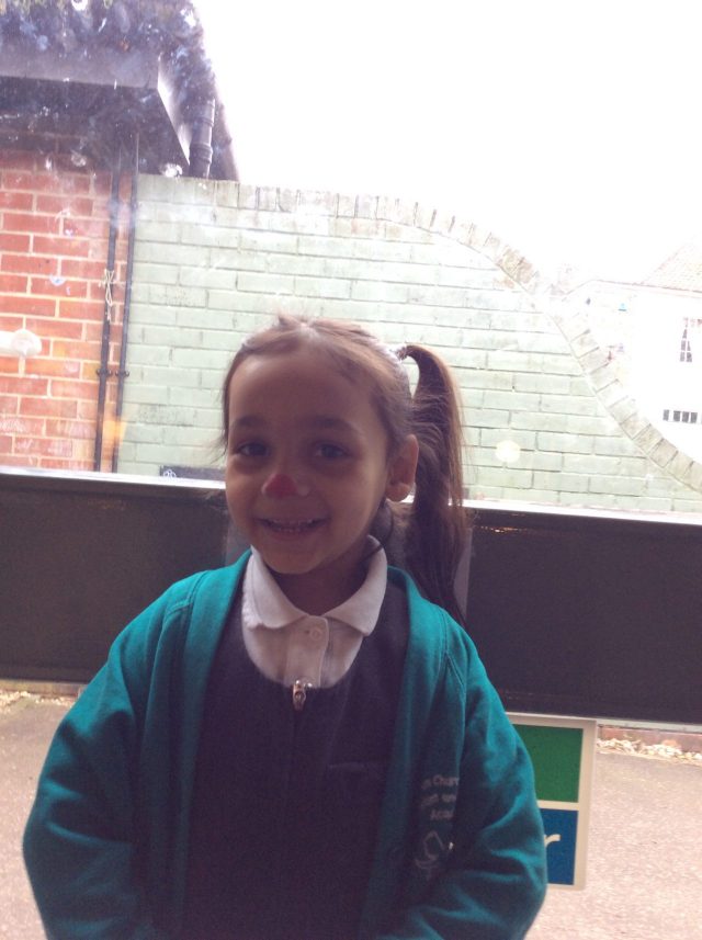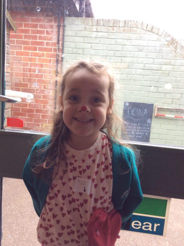 Today the children in Reception celebrated Red Nose Day. All of the children dressed in red and had the opportunity to paint their nose.