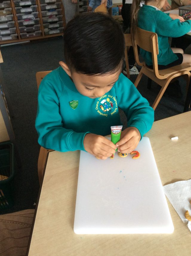 The year 2 children were excited to explore different food items and consider which part of a plant it belongs to. The children were able to recognise which food is part of a plant’s roots, stem, leaves or flower as well as which is fruit. They then investigated the fruit further by cutting the fruit open and finding the seeds.
