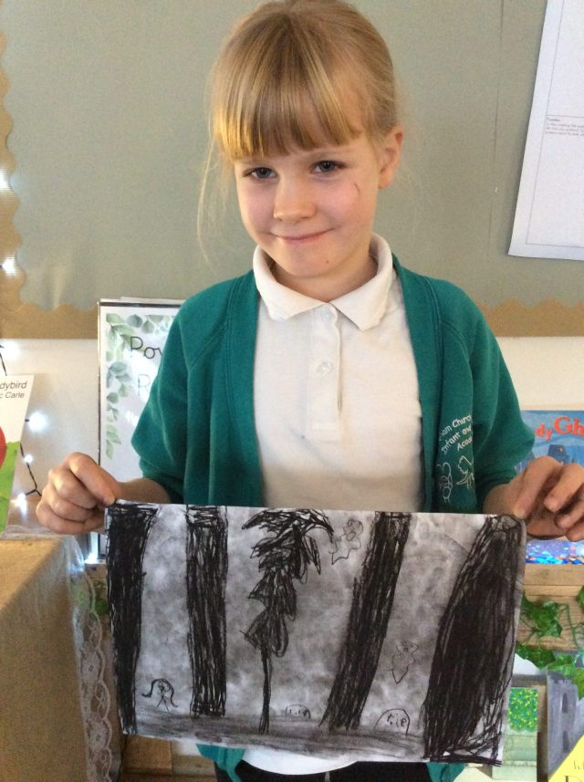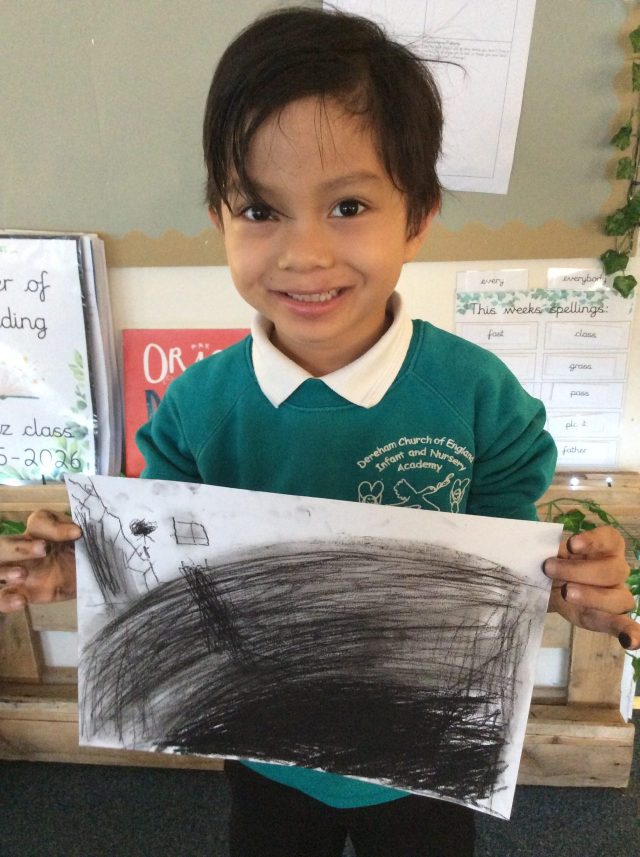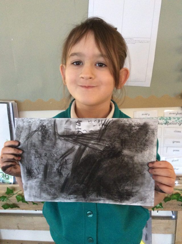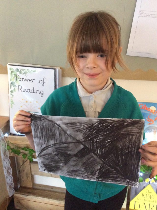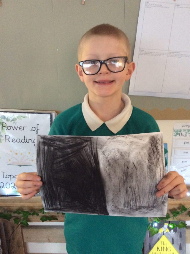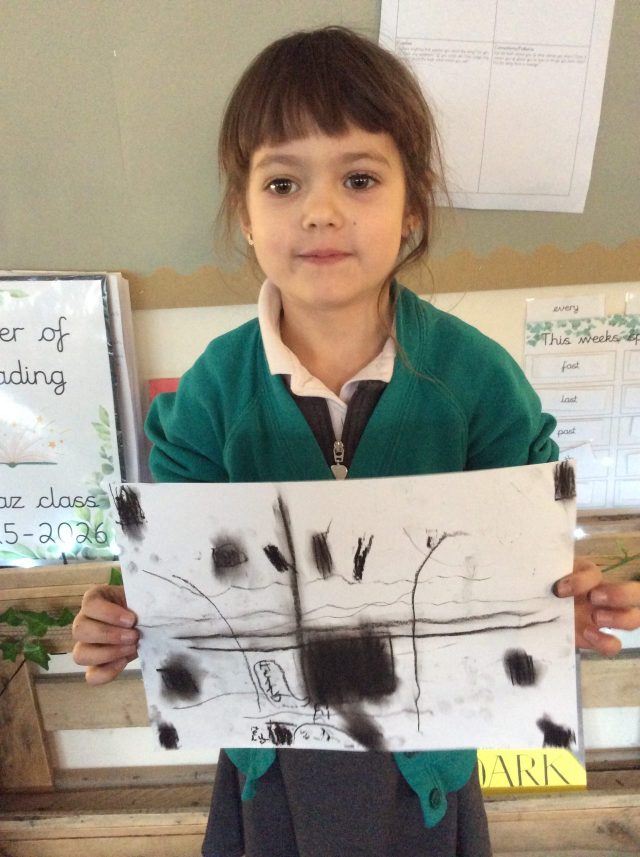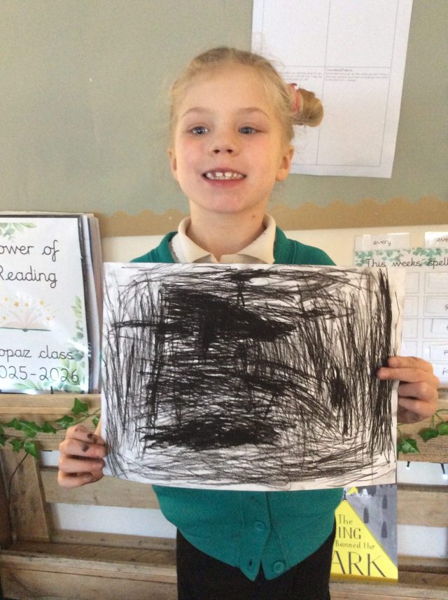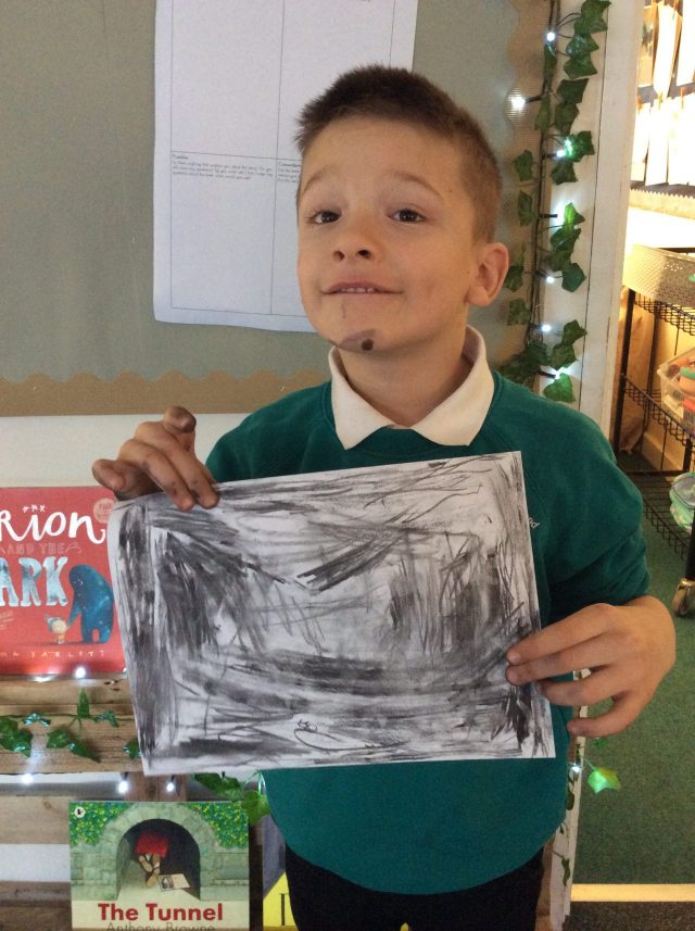 The children are very excited to begin their new Power of Reading text. So far, they have only seen the cover of the text and found out it is all to do with the dark. The children have discussed how they feel about the dark and what it makes them think of. They used charcoal to respond to their ideas about the dark.