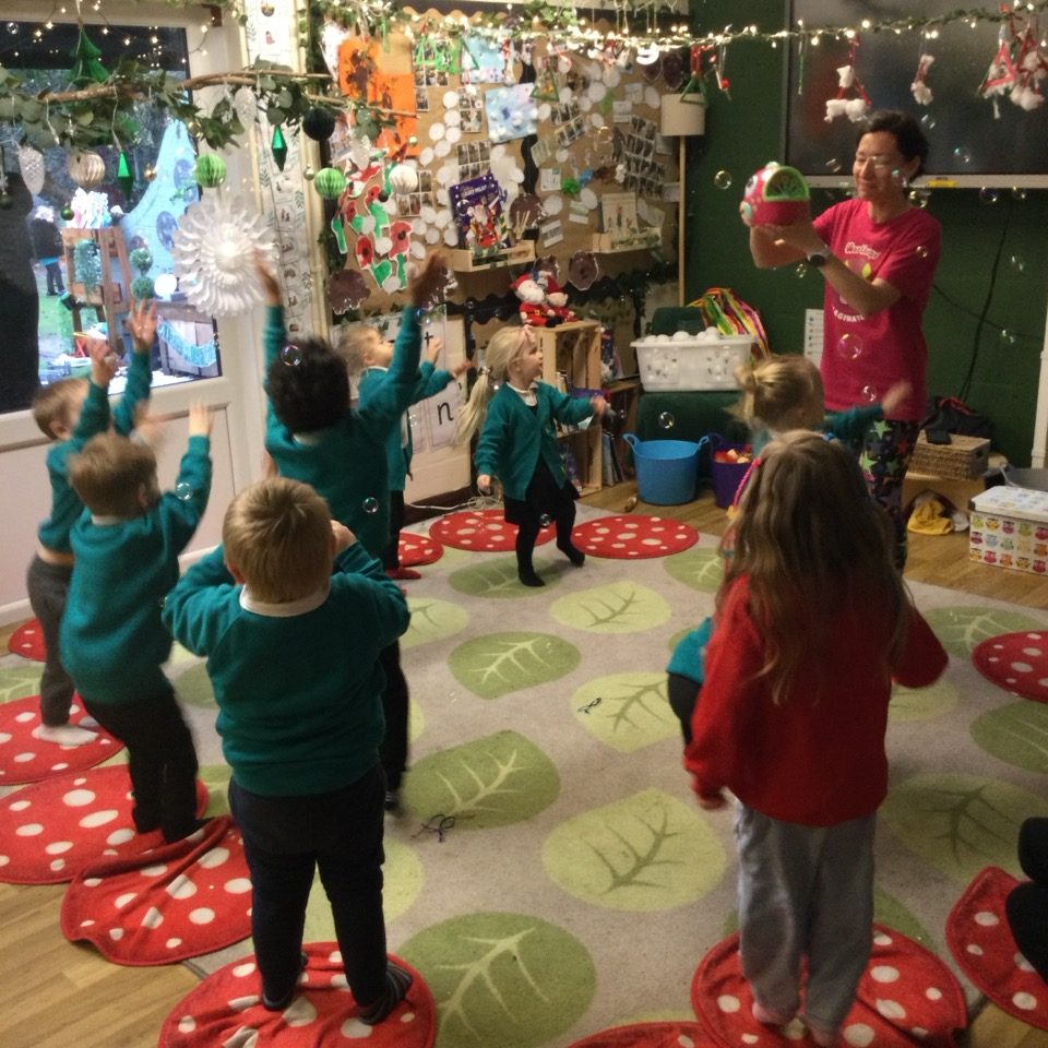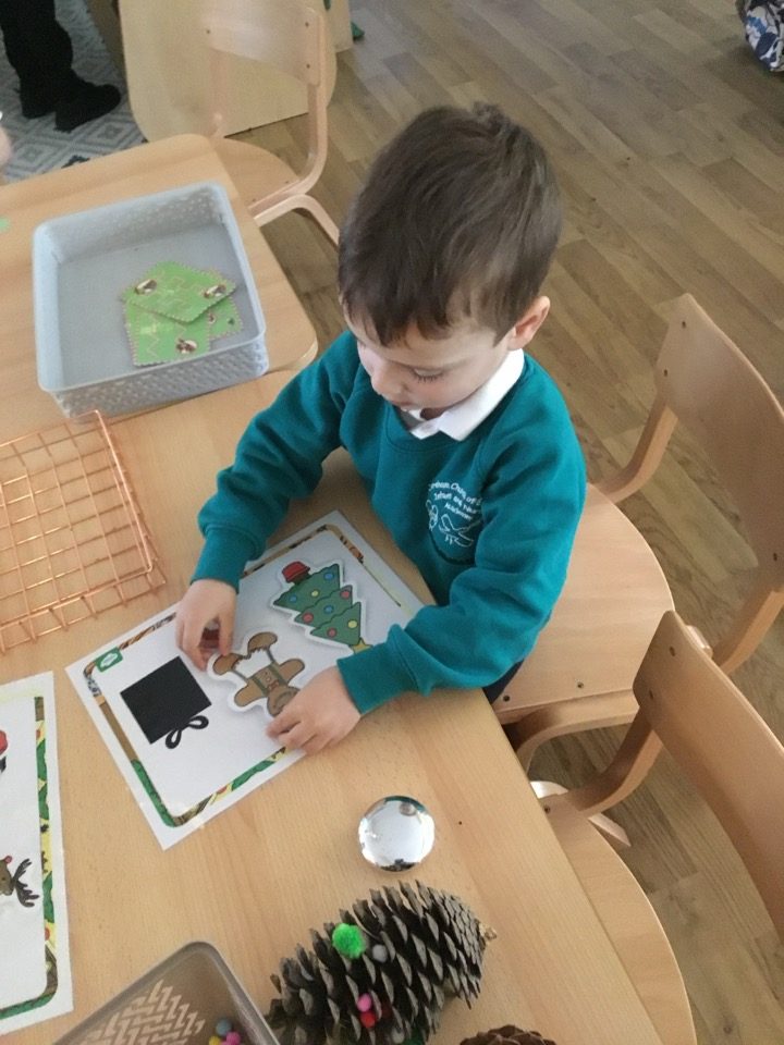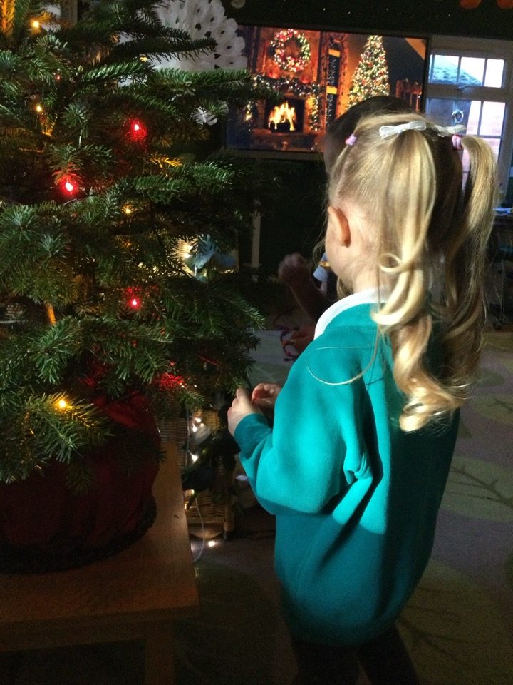 We had a Christmas lunch and a party, Father Christmas came to see us and gave us all a gift. We danced at the school disco and we enjoyed playing Christmas games together in Nursery.