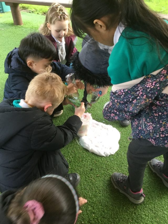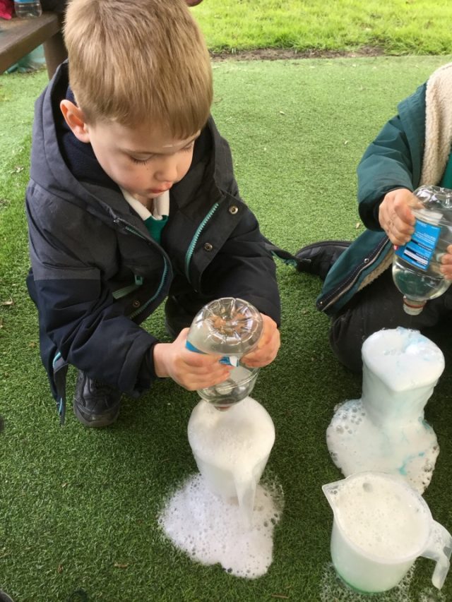 - Testing different soaps to see which type makes the biggest bubble volcano